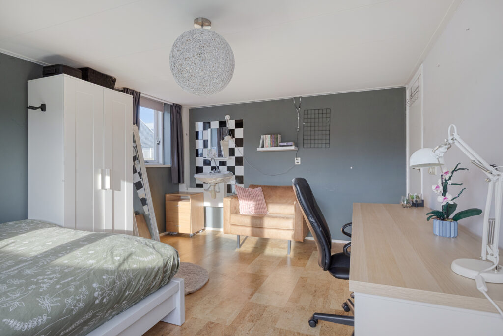 Op de eerste verdieping vind je maar liefst vier slaapkamers. Drie kamers hebben een vaste kast en alle kamers beschikken over een radiator. Daarnaast bevindt zich hier een tweede toiletruimte met een Sanibroyeur. De kamers hebben prettige afmetingen, waardoor je ze flexibel inricht als slaapkamer, werkplek of hobbykamer.