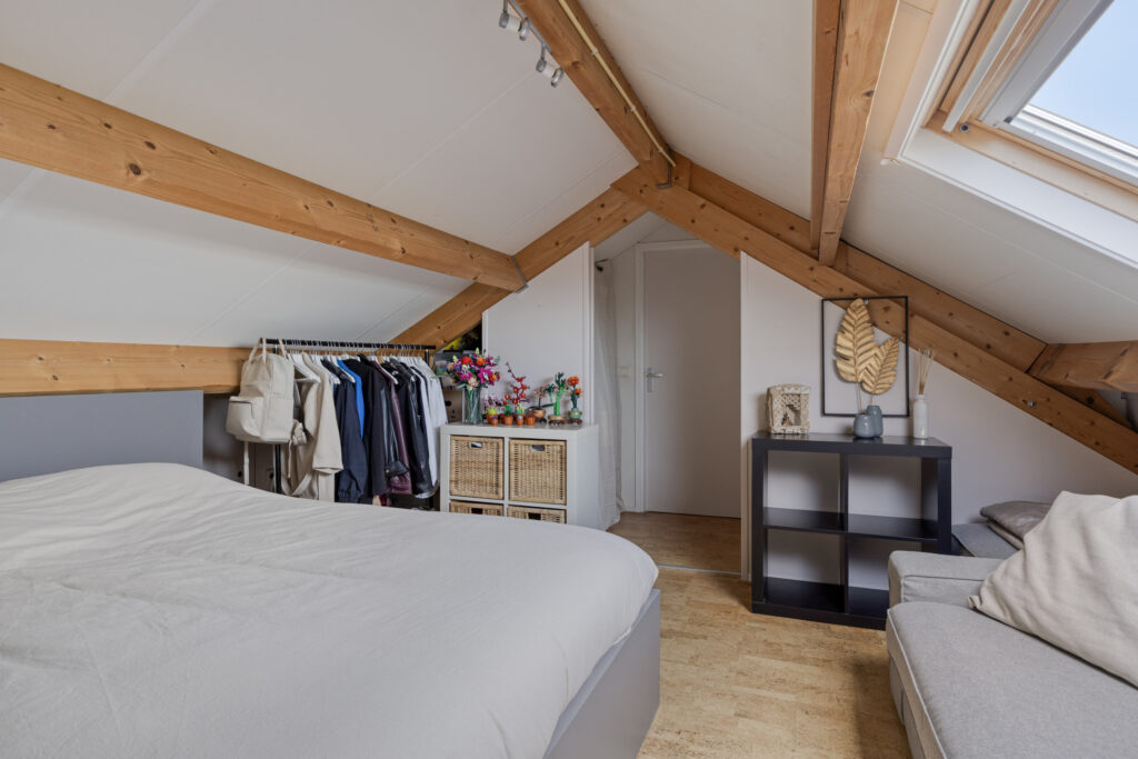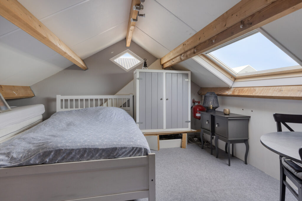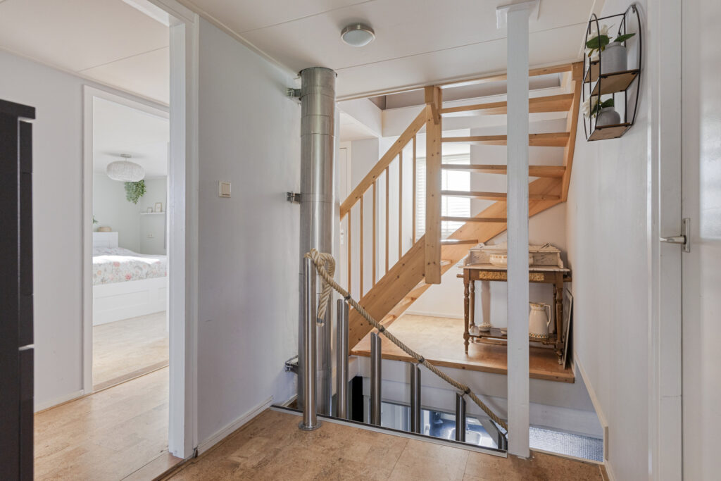 De tweede verdieping bereik je via een vaste trap. Hier liggen nog eens twee fijne kamers. Dankzij de dakramen geniet je van het uitzicht over het water. Deze verdieping leent zich uitstekend als tienerverdieping, logeerplek of thuiskantoor.