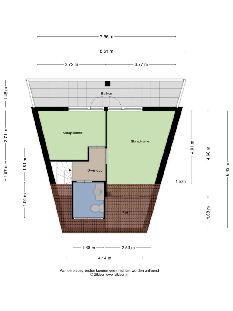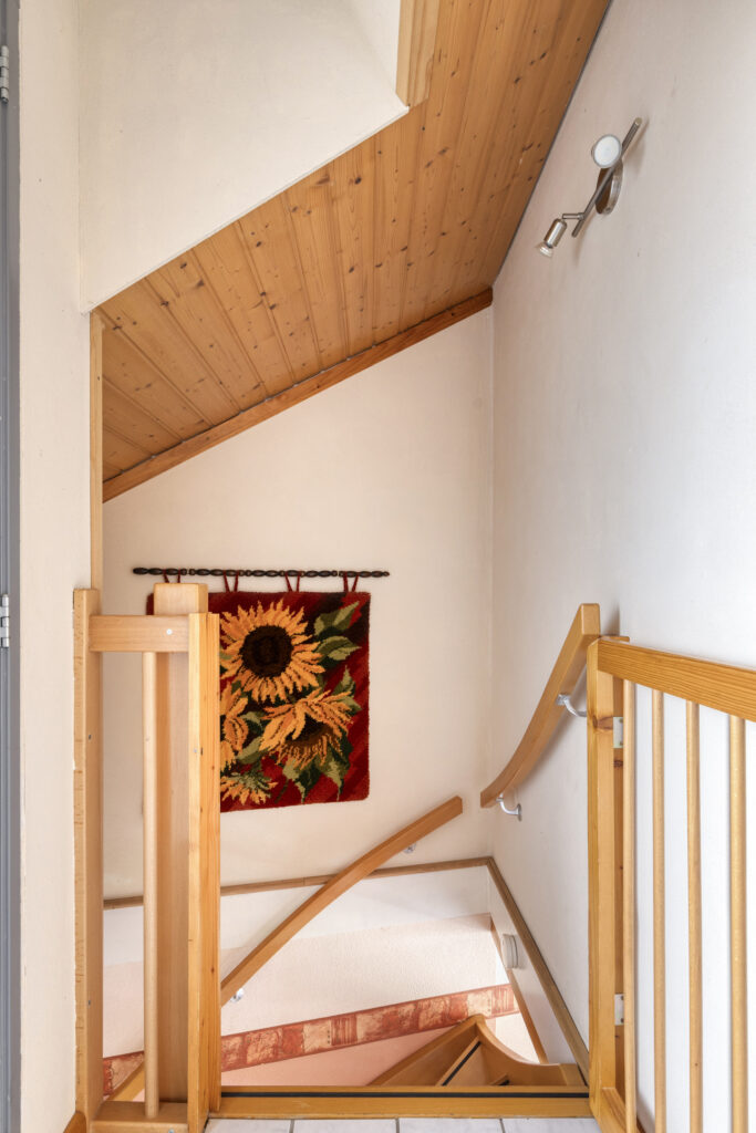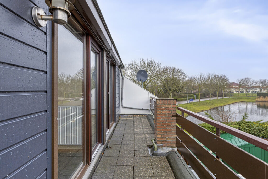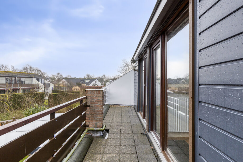Via de trap in de woonkamer bereik je de eerste verdieping. Hier vind je een tweede toilet (met wastafel) en twee ruime slaapkamers. Beide kamers ieder met een radiator en bergruimte zijn groot genoeg voor twee volwassenen en hebben een eigen deur naar het zonnige balkon.