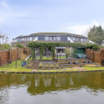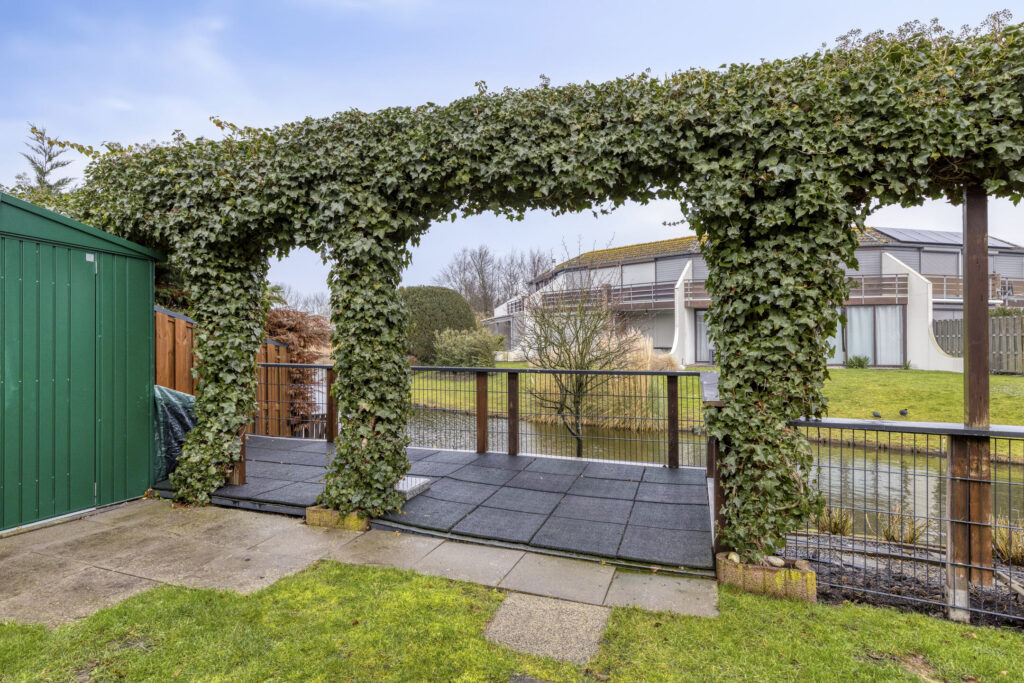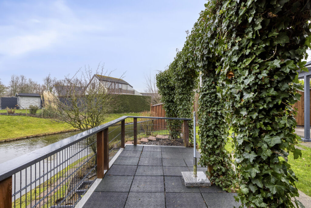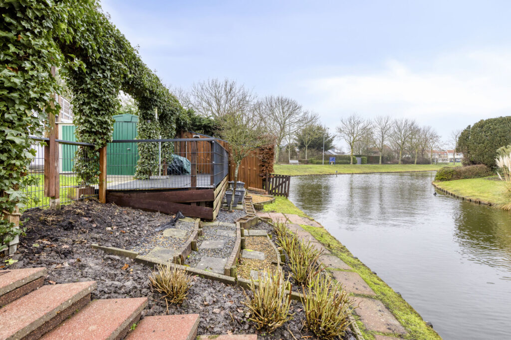 • Tuin: Ruime achtertuin met gazon, terras en uitzicht over het water.