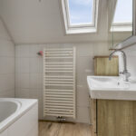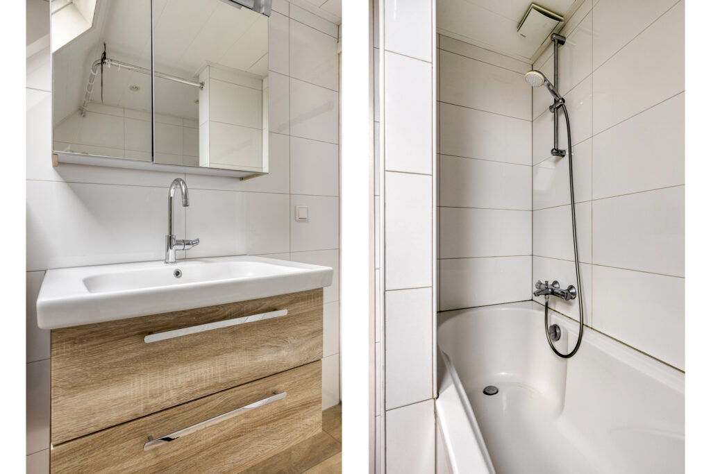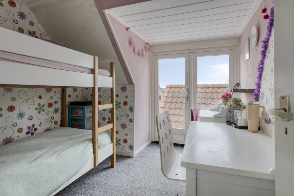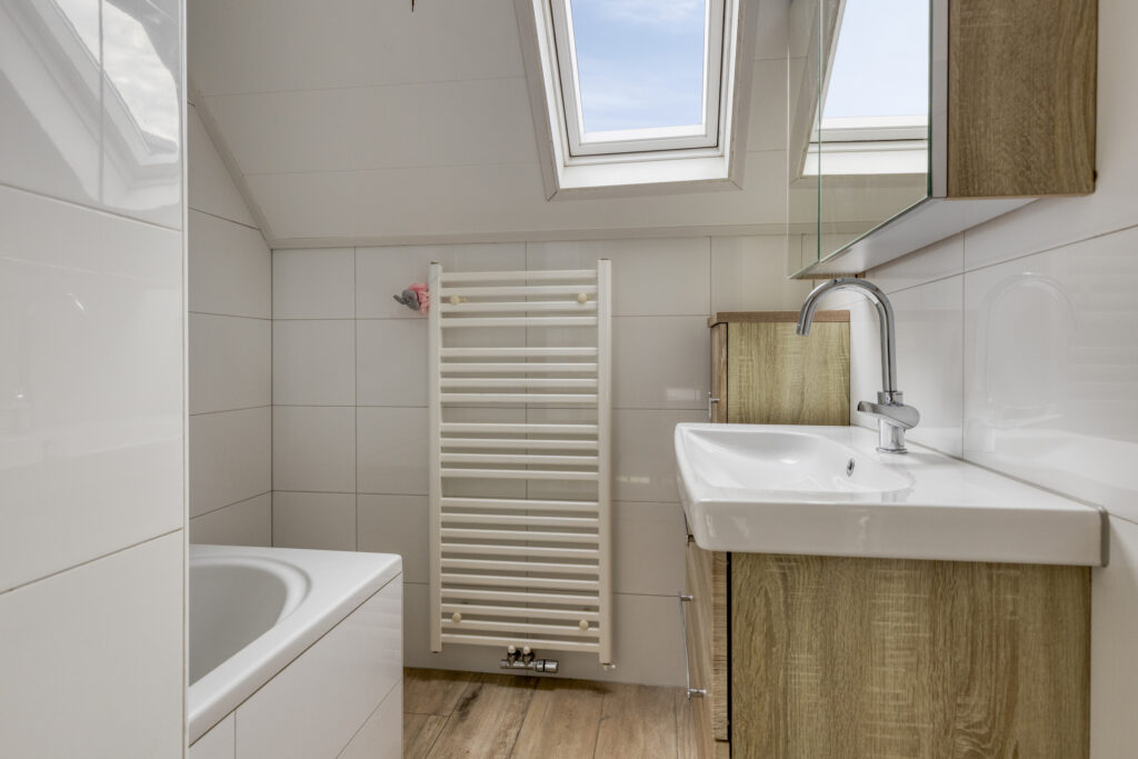 Op de eerste verdieping bevinden zich drie verrassend ruime slaapkamers. Dankzij de speelse indeling en het extra daglicht voelen deze kamers licht en prettig aan. Dit maakt de verdieping ideaal voor gezinnen, hobbyliefhebbers of iedereen die ruimte zoekt voor logees, opslag of werken aan huis. Tevens bevindt de nette badkamer zich op deze verdieping.