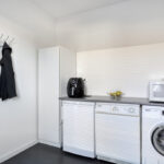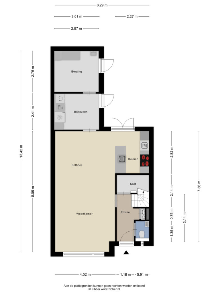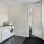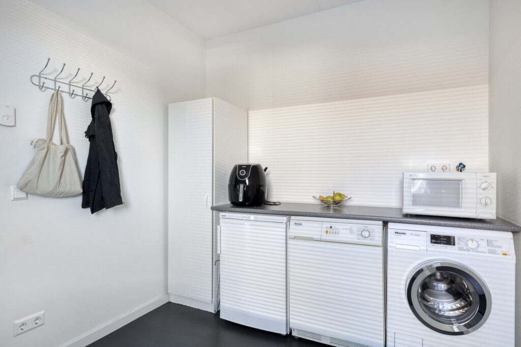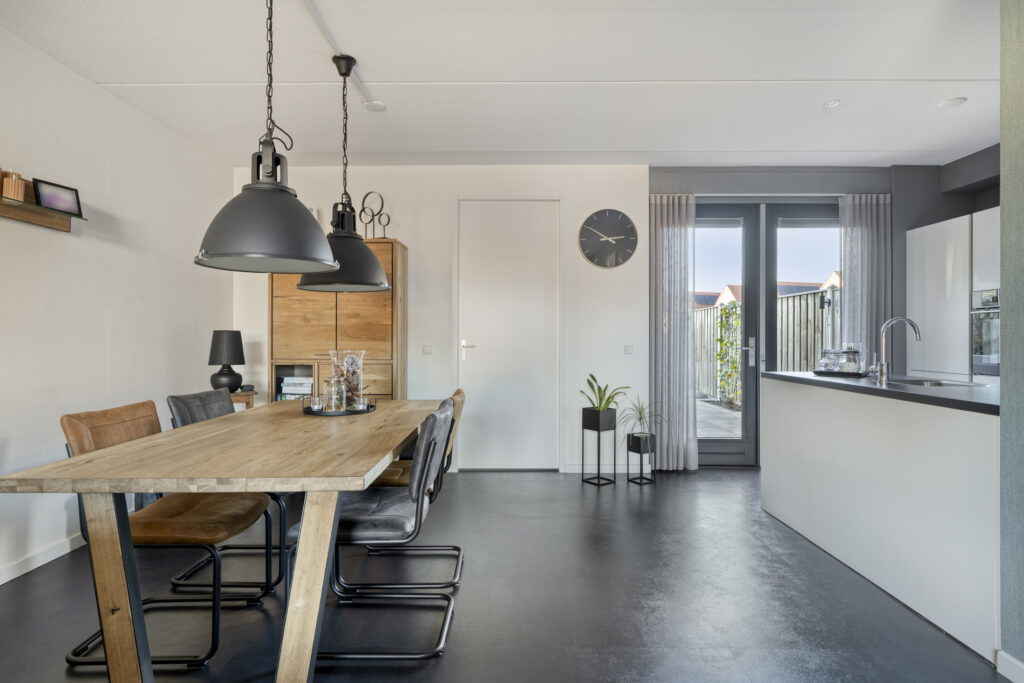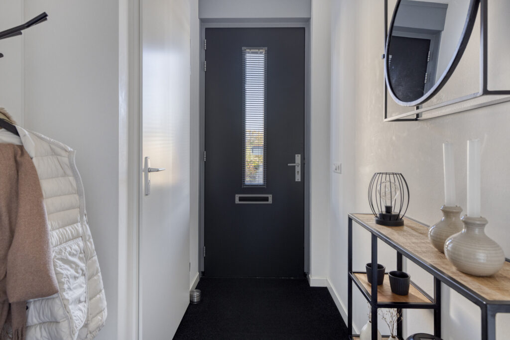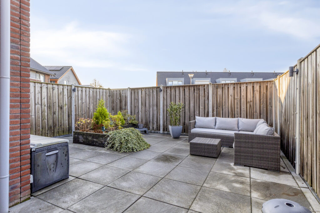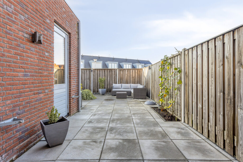 Vanuit de woonkamer stap je door naar de nette bijkeuken met witgoedopstelling en toegang tot het achterterras. Vervolgens loop je door naar de inpandige berging, ideaal voor het stallen van je elektrische fiets. Ook bereik je via deze route eenvoudig de achtertuin.