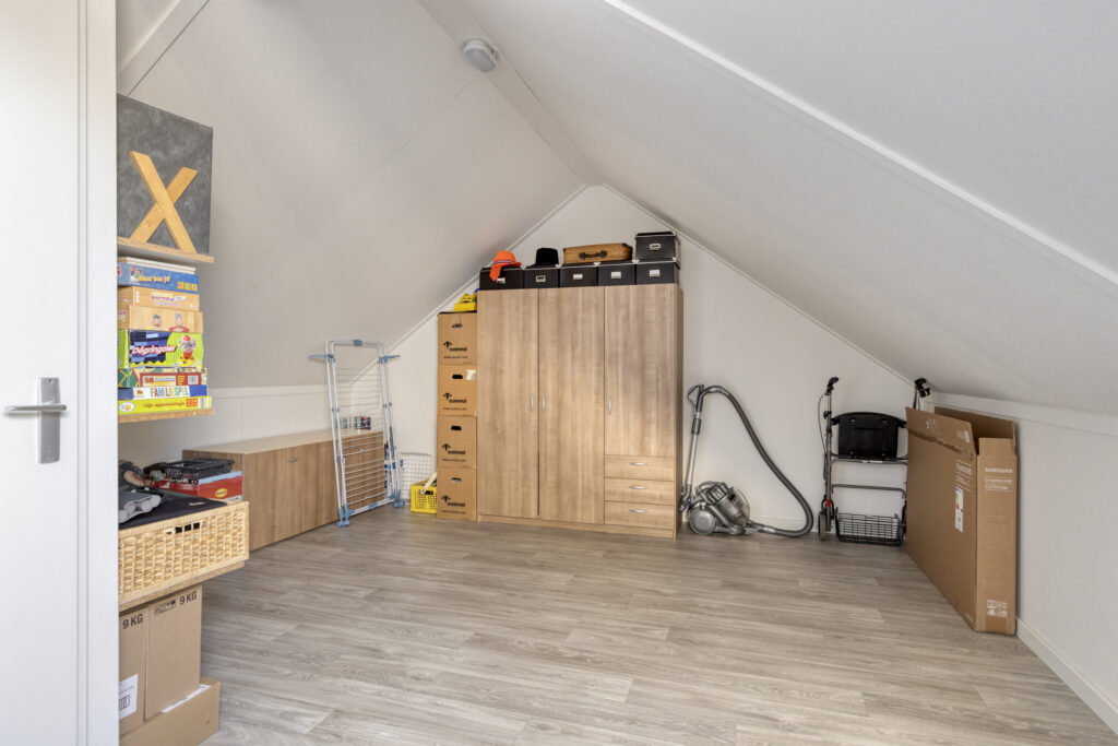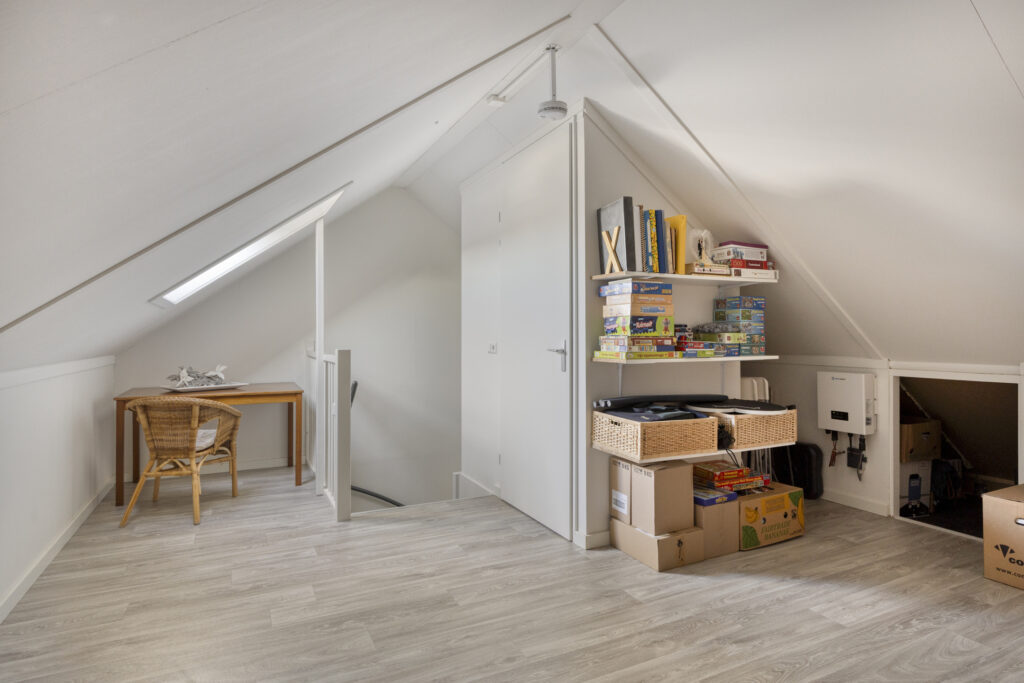 Vanaf de overloop krijg je middels een vaste trap toegang tot de 2e verdieping die in gebruik is als bergzolder. De mogelijkheid bestaat er om hier een 4e (slaap)kamer te creëren.