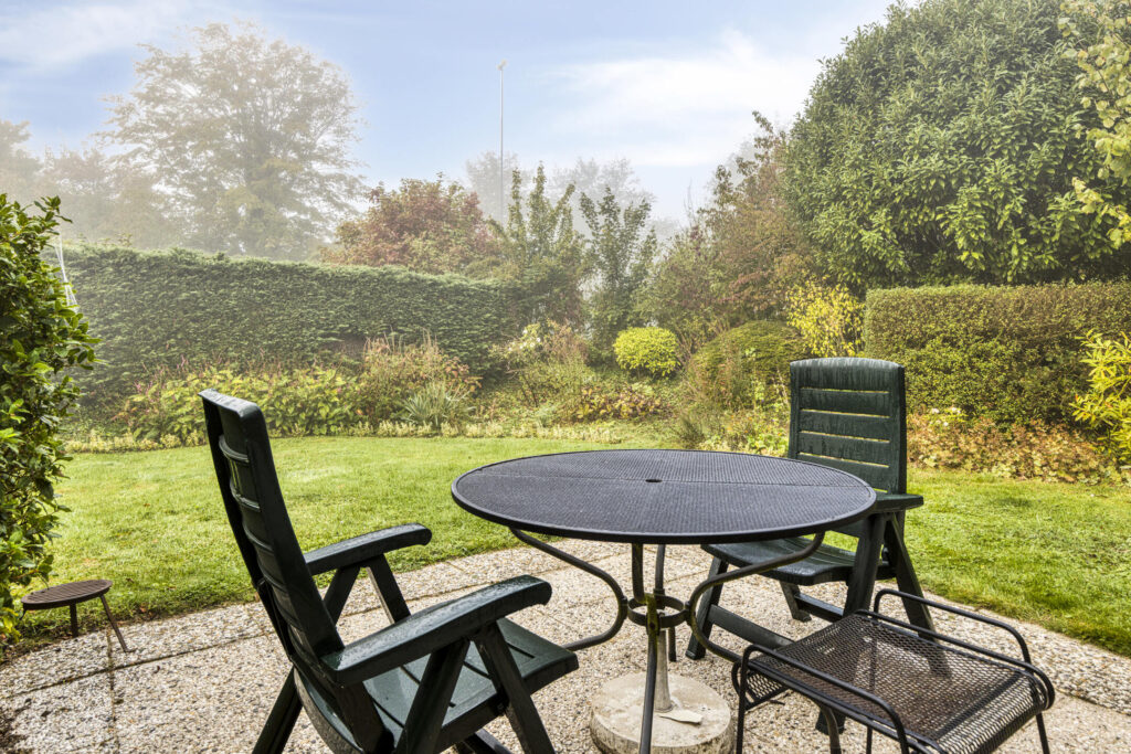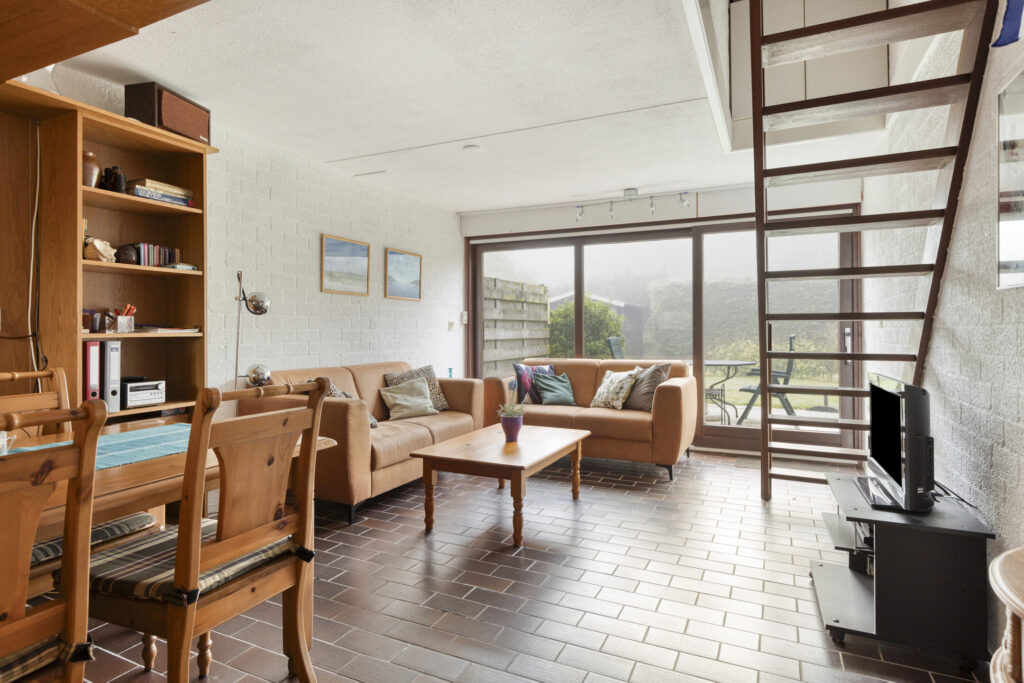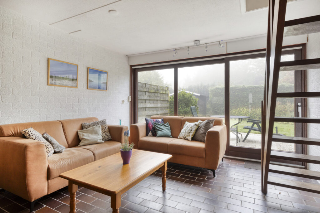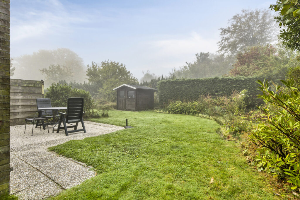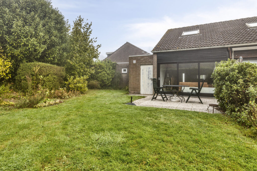 De achtertuin ligt op het zuiden en biedt de hele dag zon. Hier geniet je met een kop koffie in de ochtend of een goed glas wijn in de avond. Het terras en het gazon geven je ruimte om te ontspannen, spelen of samen te eten. Zo verleng je je vakantiegevoel buiten.
