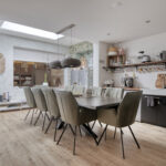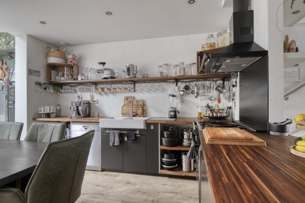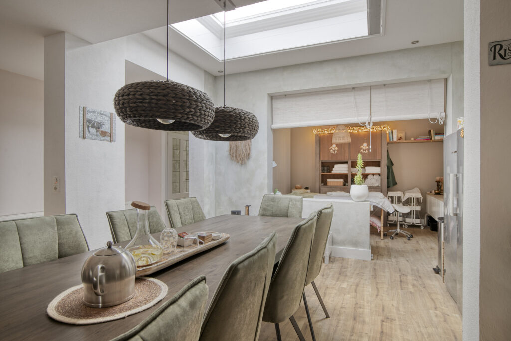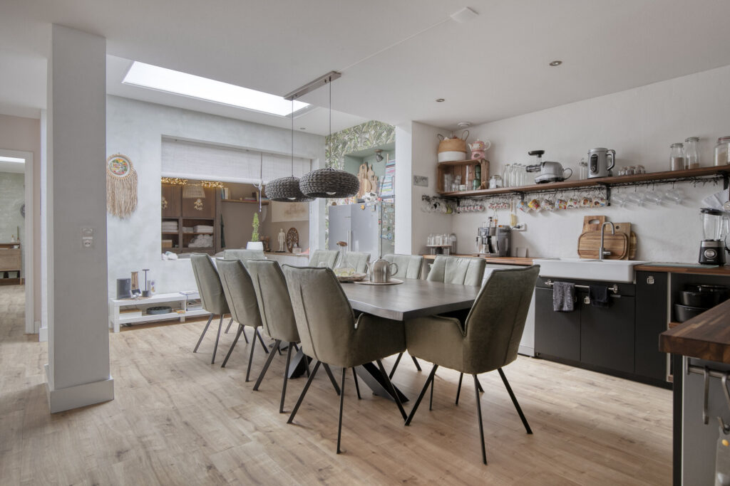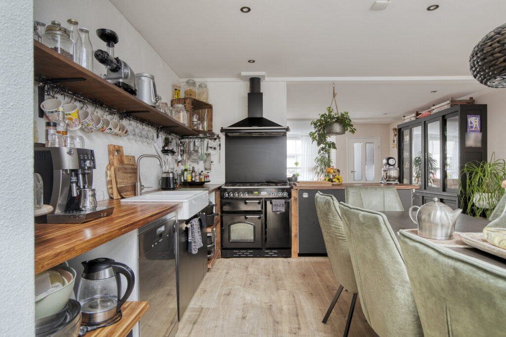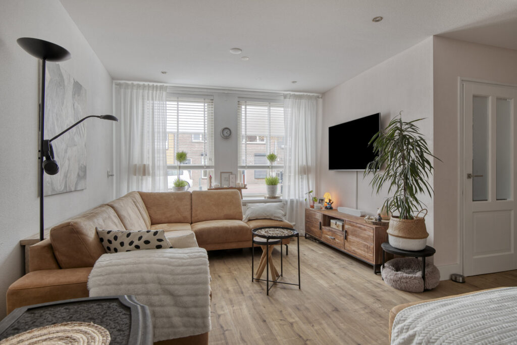Aan de voorzijde oogt de woning compact, maar zodra je binnenstapt ontdek je een zee van ruimte. De woonkamer voelt direct warm en uitnodigend aan, met een speelse indeling die je telkens opnieuw verrast. Je vindt gezellige hoekjes om samen te zijn en ruime plekken om te ontspannen. Hier woon je ruim, licht en met volop mogelijkheden om het helemaal naar je hand te zetten.