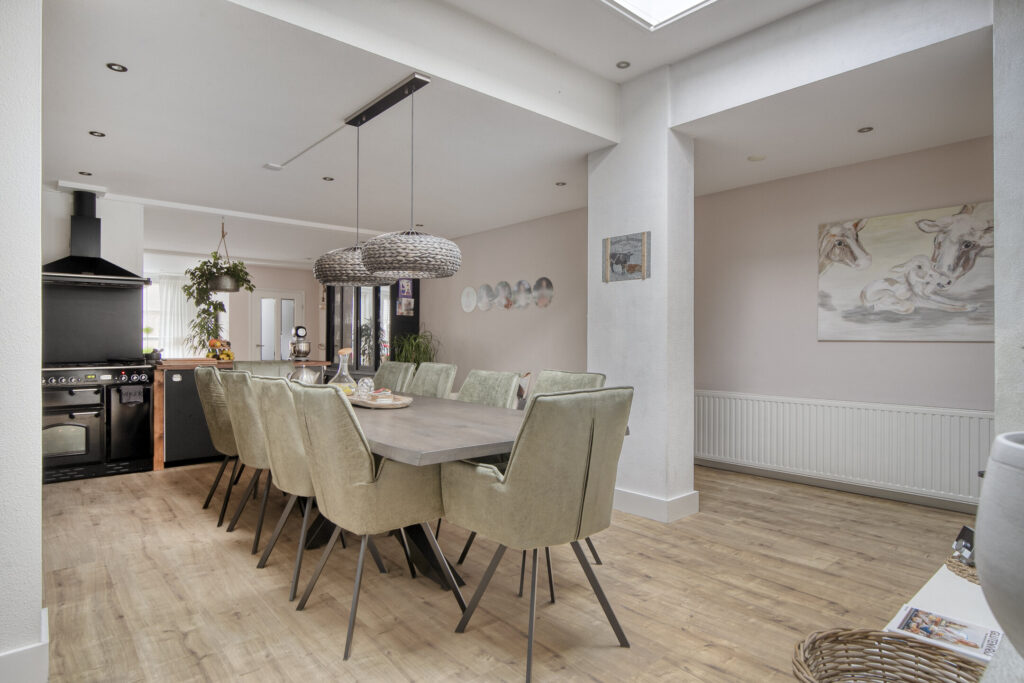 Parkeer de auto voor de deur en loop via de stoep naar binnen. Vanuit de hal kom je in de ruime woonkamer, waar een knusse tv-hoek voor gezellige avonden zorgt. Achterin ligt de ruime woonkeuken met hoekopstelling, veel werkruimte en volop plek om met familie en vrienden te koken en te tafelen. Aangrenzend tref je een extra ruimte aan die je flexibel kunt gebruiken als werkplek, speelkamer of hobbyhoek.