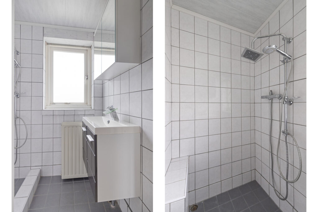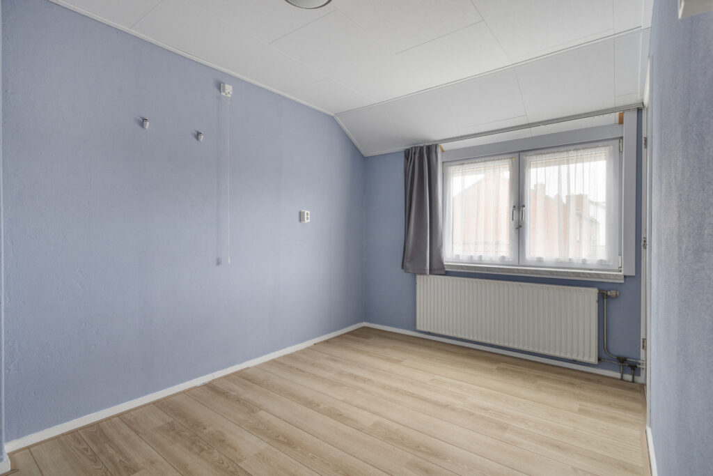 Op de eerste verdieping bevinden zich drie slaapkamers en een geheel betegelde badkamer met douche, wastafelmeubel en radiator. Via een vlizotrap bereik je de bevloerde steekzolder, handig als extra opslagruimte.