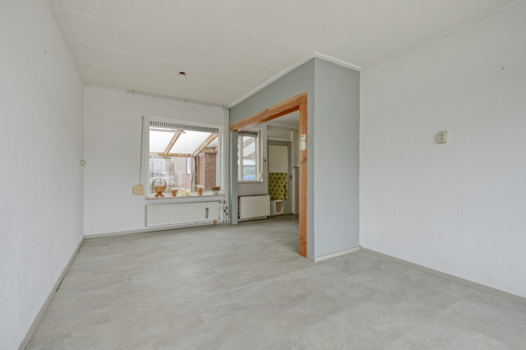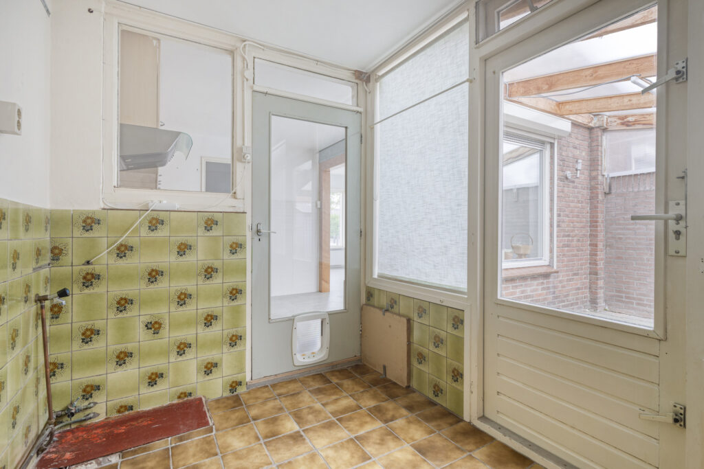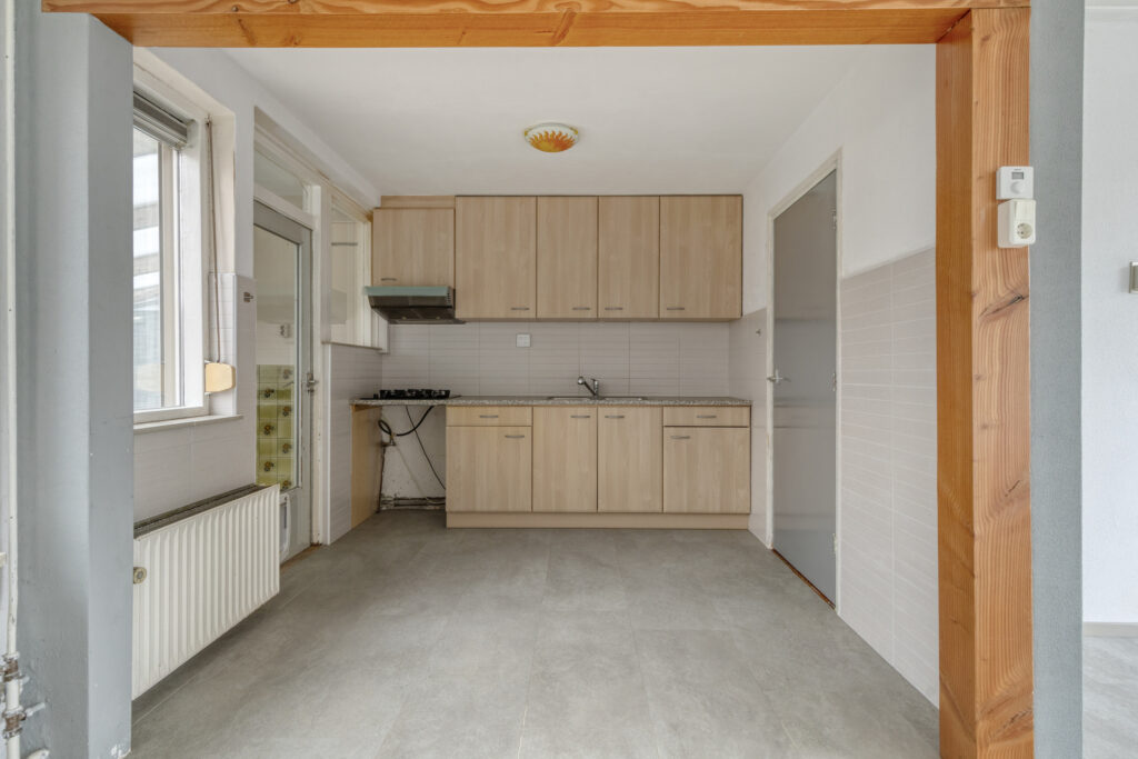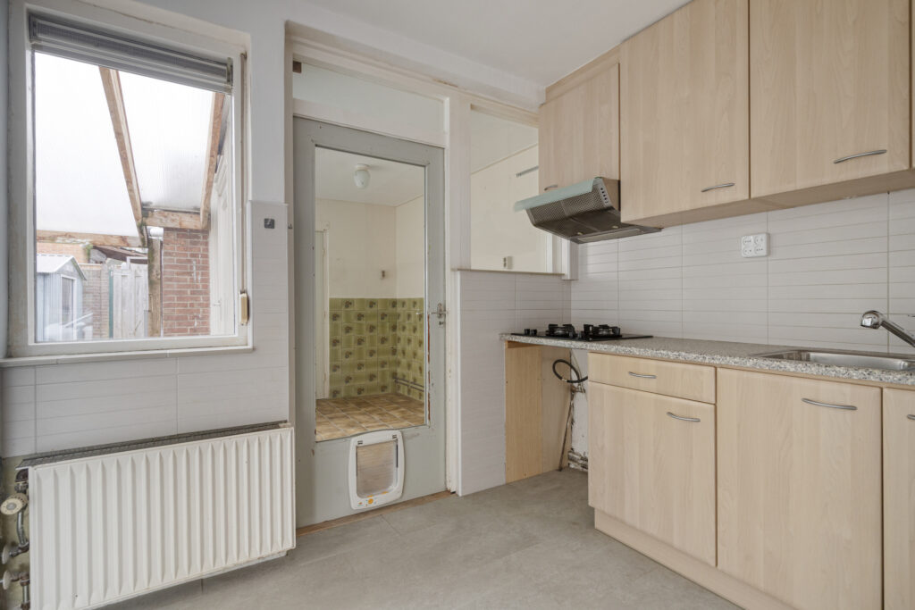 Vanuit de hal loop je het woongedeelte binnen wat bestaat uit een open keuken en een doorzonwoonkamer, die veel daglicht binnenlaat en voorzien is van rolluiken. De open keuken sluit naadloos aan en geeft toegang tot de bijkeuken met een deur naar de tuin. Achterin ligt een inpandige berging die zich goed leent voor een (tweede) badkamer of extra hobbyruimte.