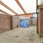 De achtertuin is volledig bestraat, zonnig gelegen en heeft een vrije achterom.