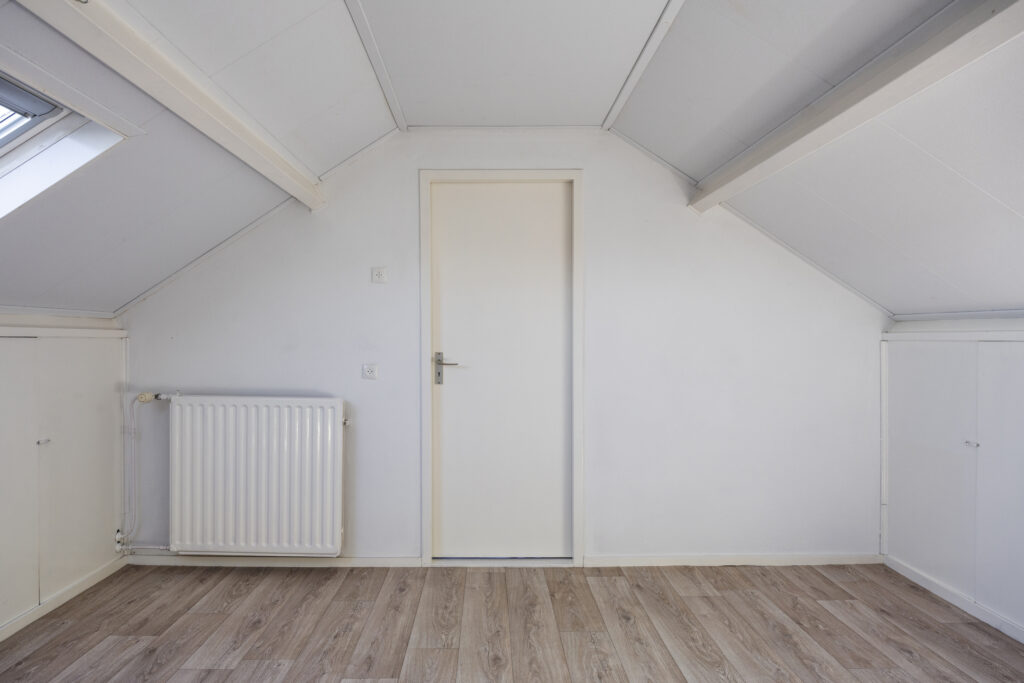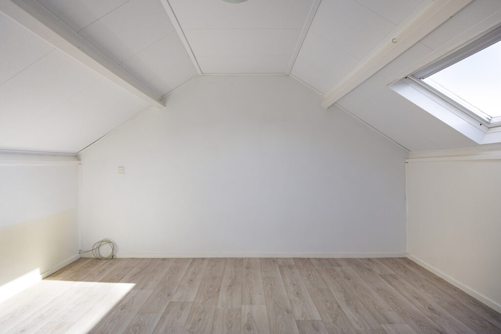 De zolderverdieping biedt een overloop en een vierde slaapkamer met dakraam. Dankzij de knieschotbergingen heb je hier veel extra opbergruimte.
