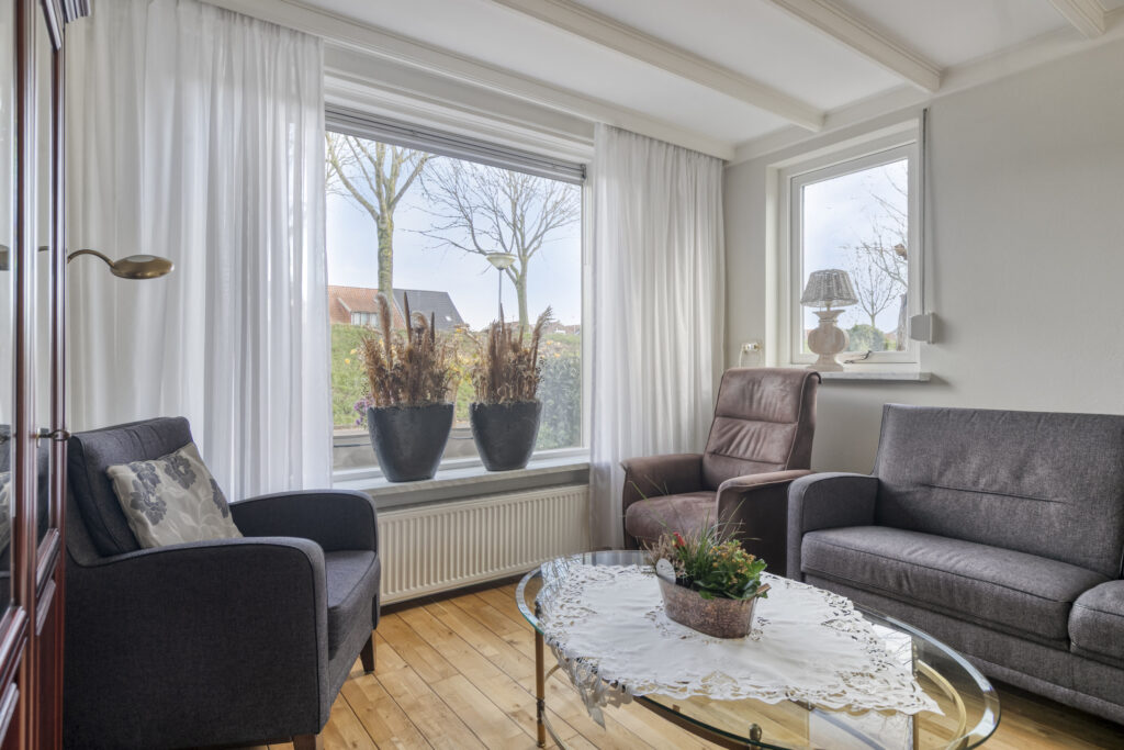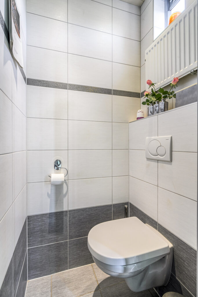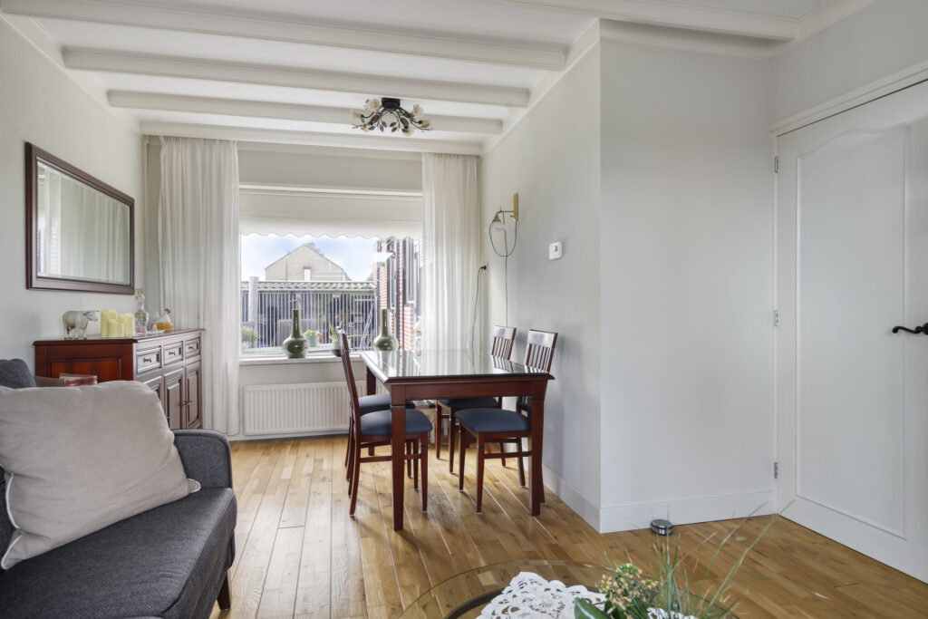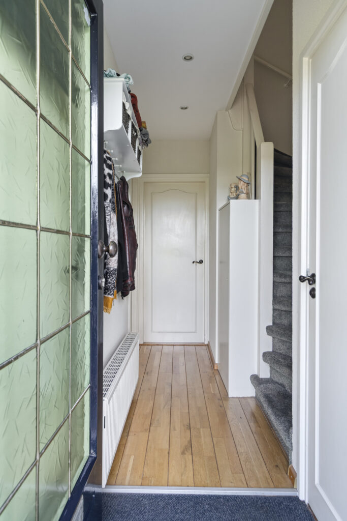 Je bereikt de woning via de verzorgde voortuin met beplanting en bestrating. In de hal zie je meteen het nette onderhoud, de parketvloer en de vernieuwde meterkast. Het toilet is volledig betegeld en voorzien van ventilatie. De doorzonwoonkamer heeft veel licht en biedt ruimte voor een sfeervolle zit- en eethoek.