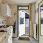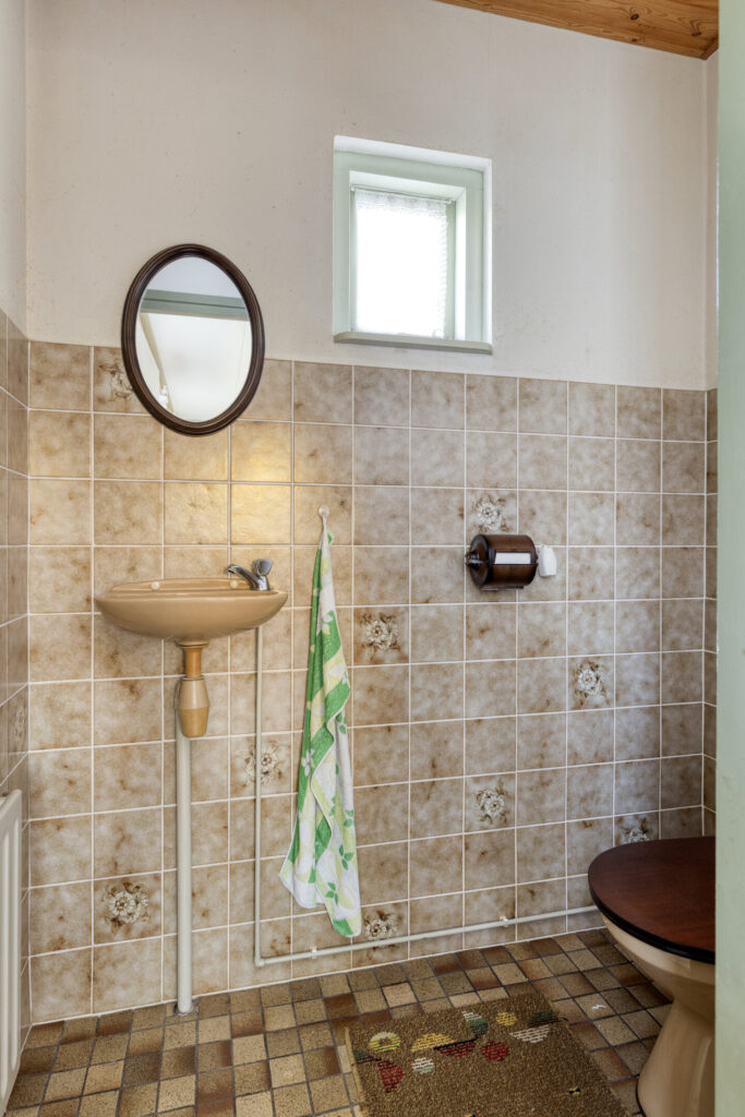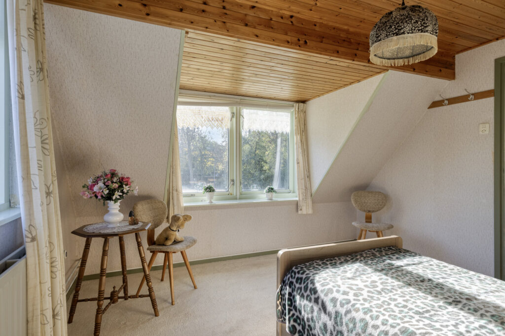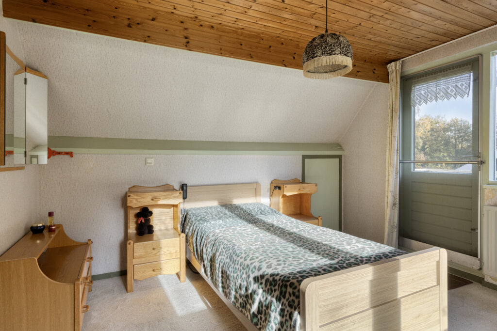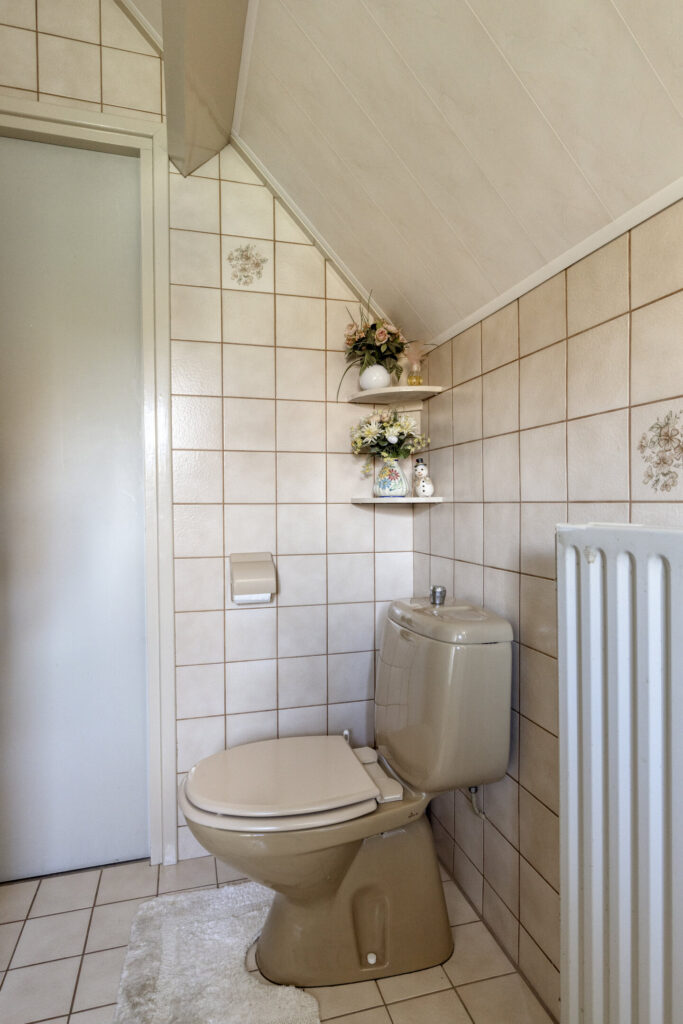 Grenzend aan de woonkamer ligt de gesloten keuken. De keuken is gedateerd, maar de ruimte biedt alle mogelijkheden om hier jouw droomkeuken te realiseren. Denk aan een moderne leefkeuken met uitzicht over de tuin of een landelijke stijl die past bij de omgeving.