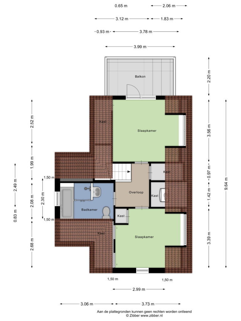 Vanuit de woonkamer leidt de bordestrap naar de eerste verdieping. Halverwege de trap is een luik met extra bergruimte, handig voor spullen die je niet dagelijks nodig hebt. Boven vind je een ruime overloop met twee vaste kasten, waarvan één de cv-installatie bevat. Er zijn twee ruime slaapkamers, elk met vaste kasten en één met toegang tot een balkon dat uitkijkt over de tuin. De badkamer is ruim van opzet en voorzien van een ligbad, douche, wastafel en tweede toilet.