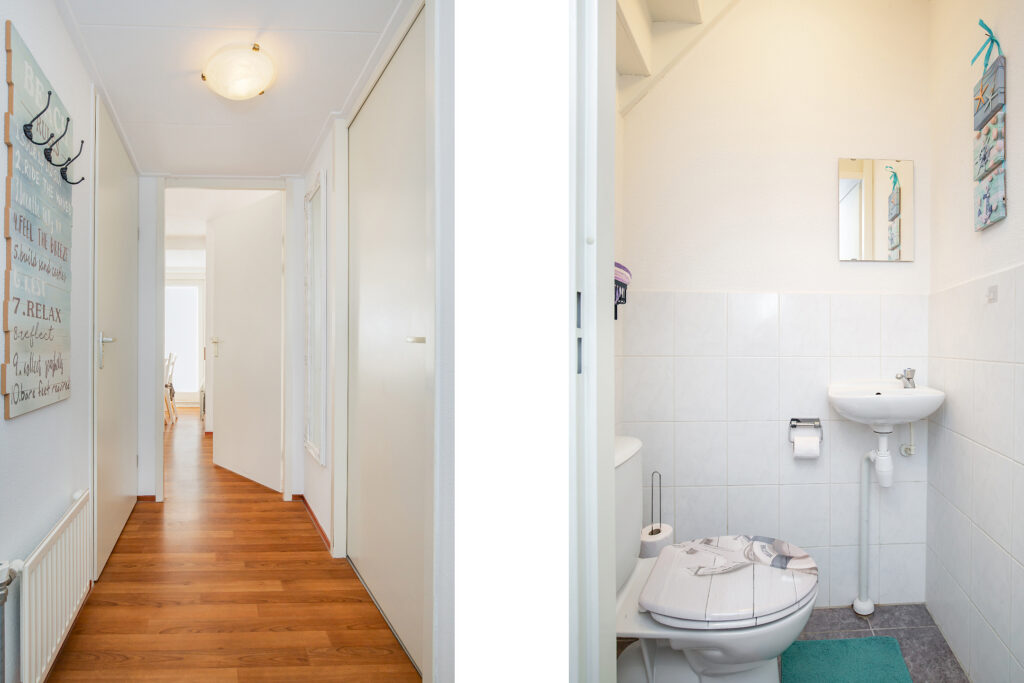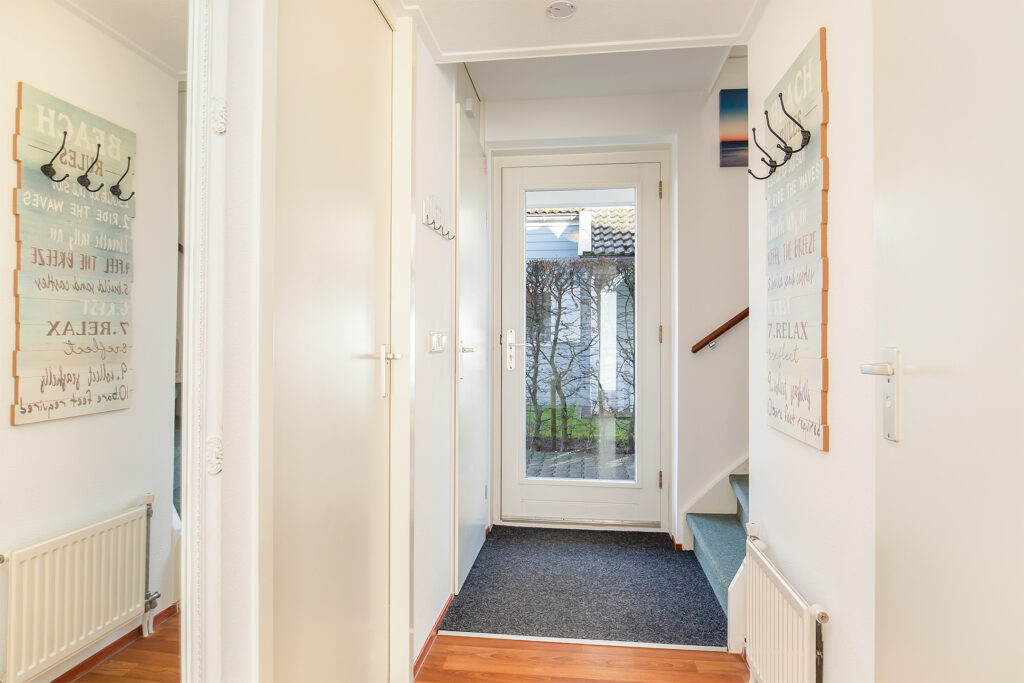 Via de entree/hal bereik je het toilet (met fonteintje), de bijkeuken/berging (met witgoedaansluiting, cv-opstelling en tuindeur) en het ruime leefgedeelte.