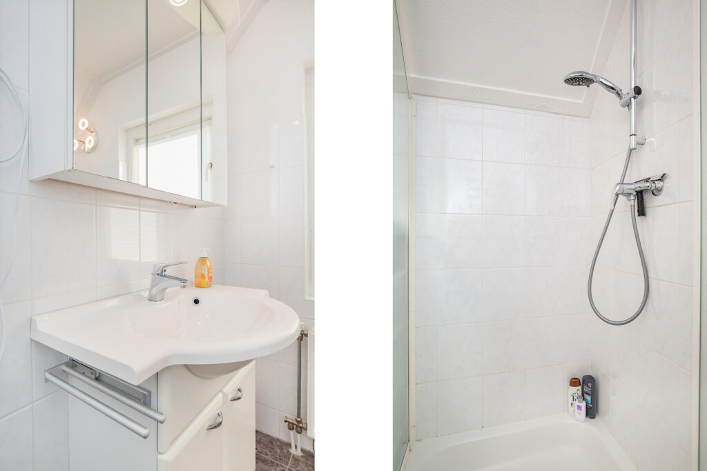 Vanaf de overloop heb je toegang tot drie compleet ingerichte slaapkamers en een verzorgde badkamer met douchecabine, wastafelmeubel met spiegelkast en een tweede toilet.