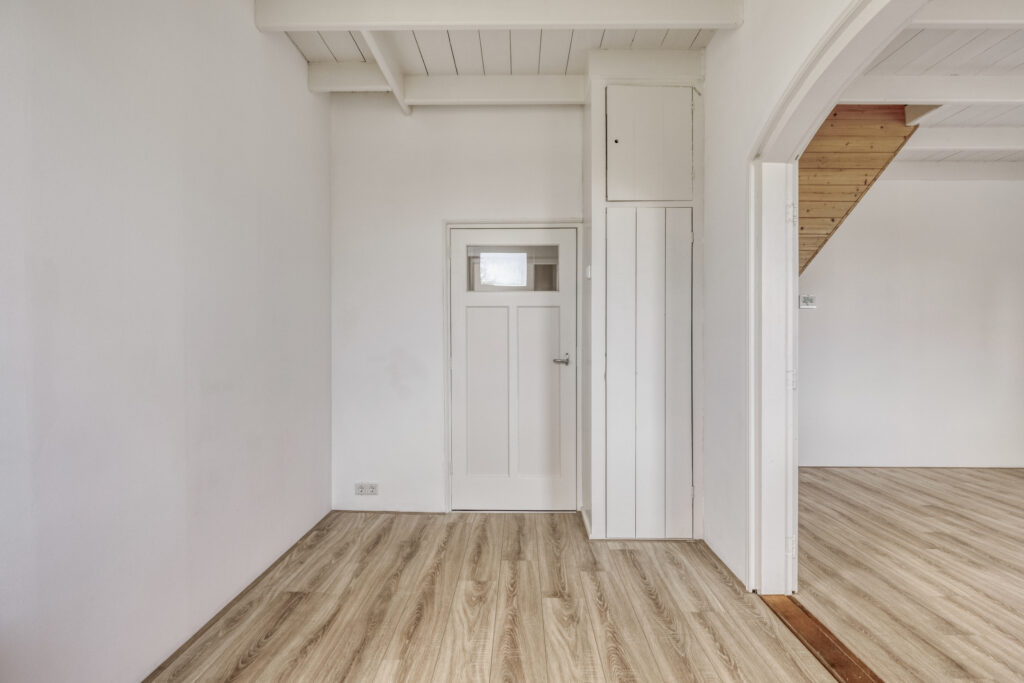 Op de eerste verdieping vind je twee afzonderlijke slaapgedeelten. Het eerste gedeelte bereik je via de hal en bestaat uit een ruime slaapkamer met vaste kast. Het tweede gedeelte is via de bijkeuken toegankelijk en ook hier bevindt zich een ruime kamer met kastruimte. Zo beschik je over twee aparte, goed bruikbare ruimtes die je flexibel kunt indelen.