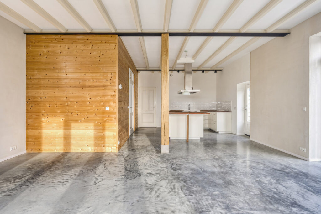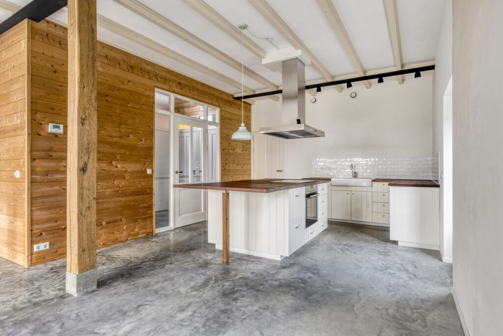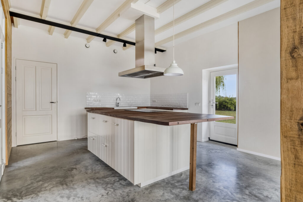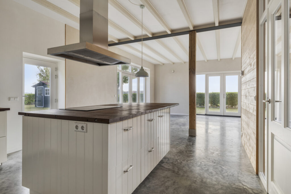 De entree bevindt zich eveneens aan de zijkant. De hal beschikt over een meterkast, garderobekast en een separate toiletruimte. Vervolgens stap je het indrukwekkende woongedeelte in: een grote, lichte ruimte met een prachtig uitzicht over de tuin en de polder. De open keuken met kookeiland en apparatuur vormt het hart van dit woongedeelte. Openslaande tuindeuren leiden je naar het zonnige terras. Vanuit het woongedeelte kom je in de technische ruimte annex bijkeuken met witgoedaansluitingen en doorgang naar woning 1.