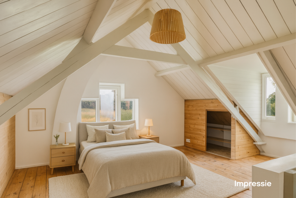 Via een vlizotrap in een van de slaapkamers bereik je de bevloerde bergzolder.