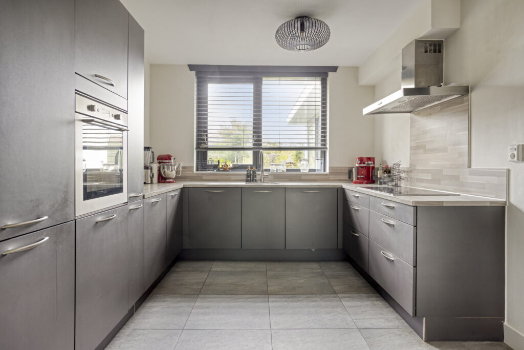 De moderne keuken is een plek waar koken en samenzijn centraal staan. Volledig uitgerust met hoogwaardige inbouwapparatuur en aansluitend een gezellige keukenkamer en praktische bijkeuken, vormt dit het hart van het huis.