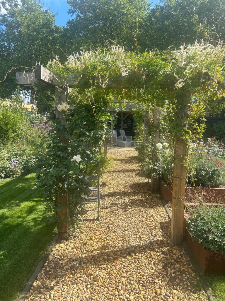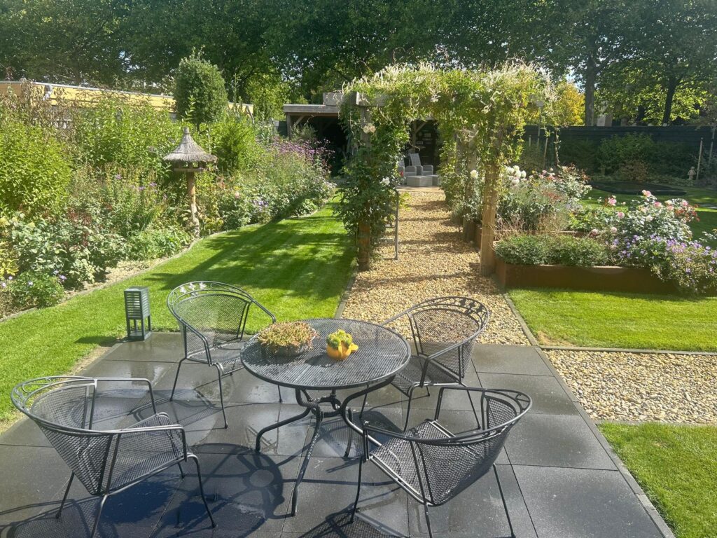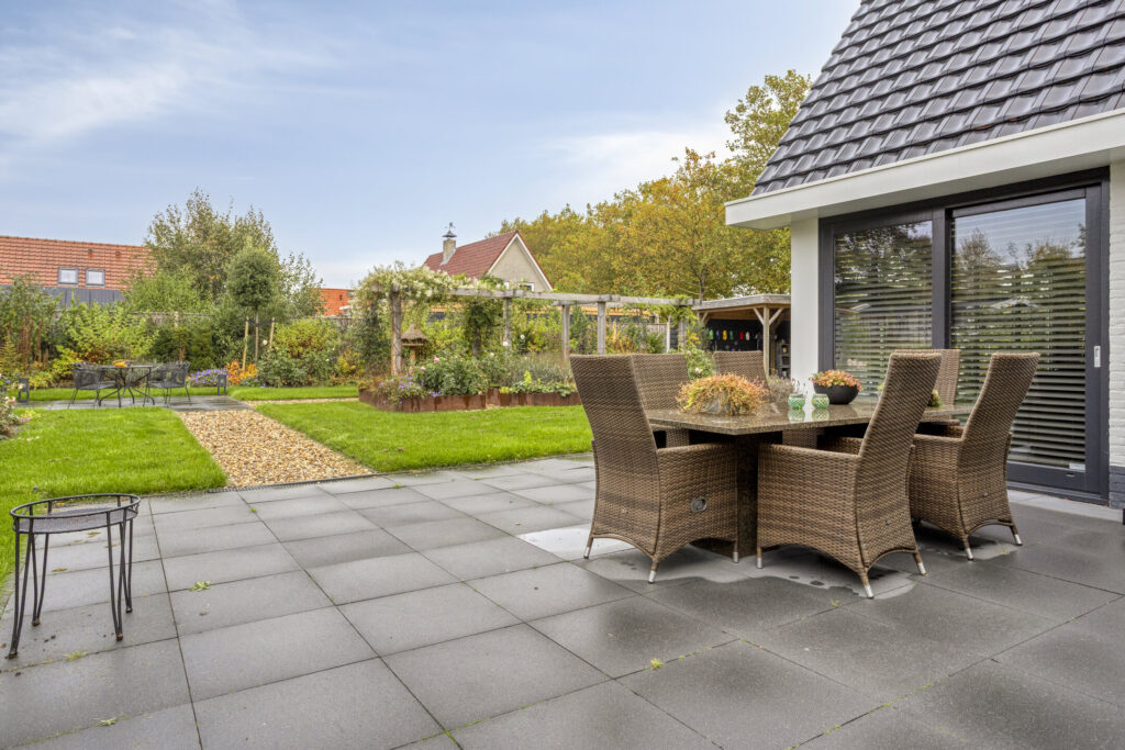 De tuin is in 2022 opnieuw aangelegd en volledig omheind, zodat rust en privacy gegarandeerd zijn. Onder de royale overkapping geniet u van lange zomeravonden met familie en vrienden. De ruime parkeergelegenheid en de voortuin in strandsfeer maken het plaatje compleet.