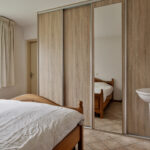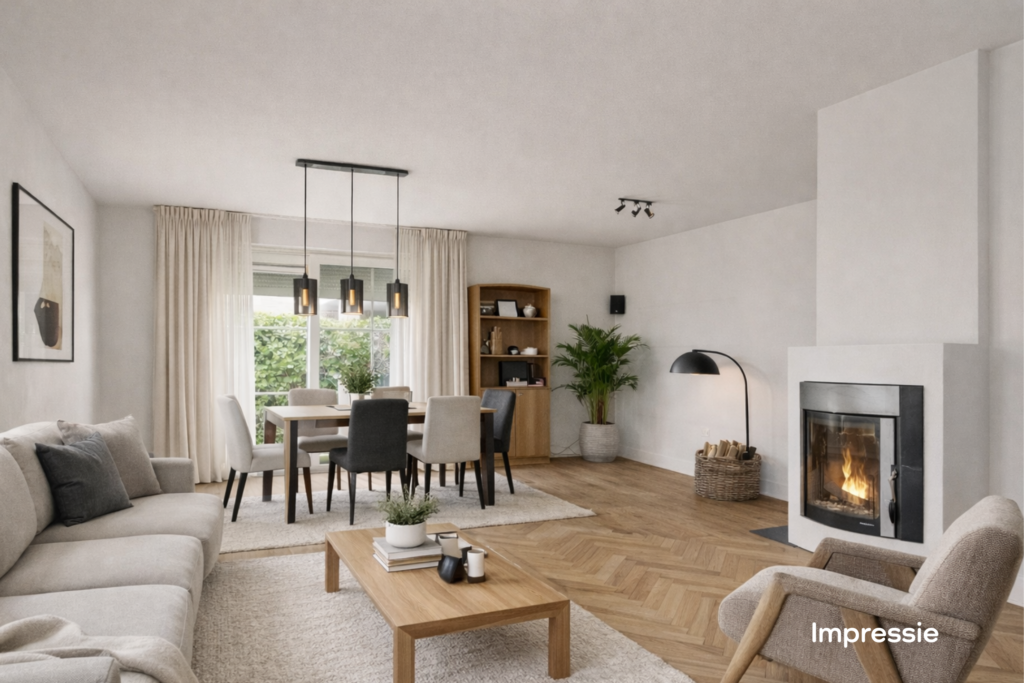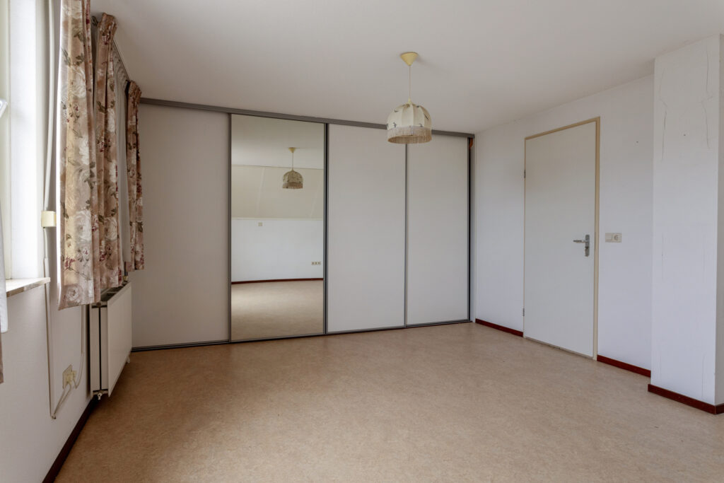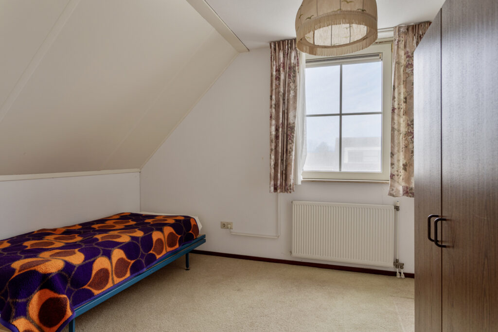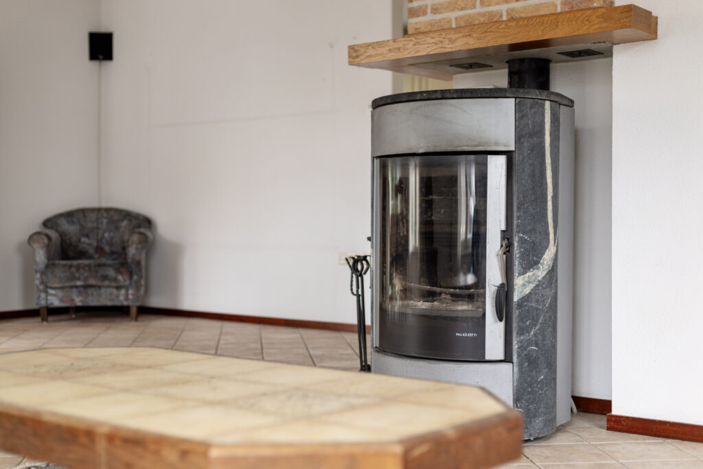 Via de voordeur kom je in de hal met het toilet en de meterkast. De woonkamer is uitgerust met vloerverwarming, diverse ramen, een schuifpui en een sfeervolle houtkachel, wat zorgt voor een comfortabel en ruimtelijk gevoel. Op de begane grond bevindt zich bovendien een slaapkamer met een vaste kast, waardoor je flexibiliteit hebt in het gebruik, bijvoorbeeld als logeerkamer, thuiskantoor of speelruimte.