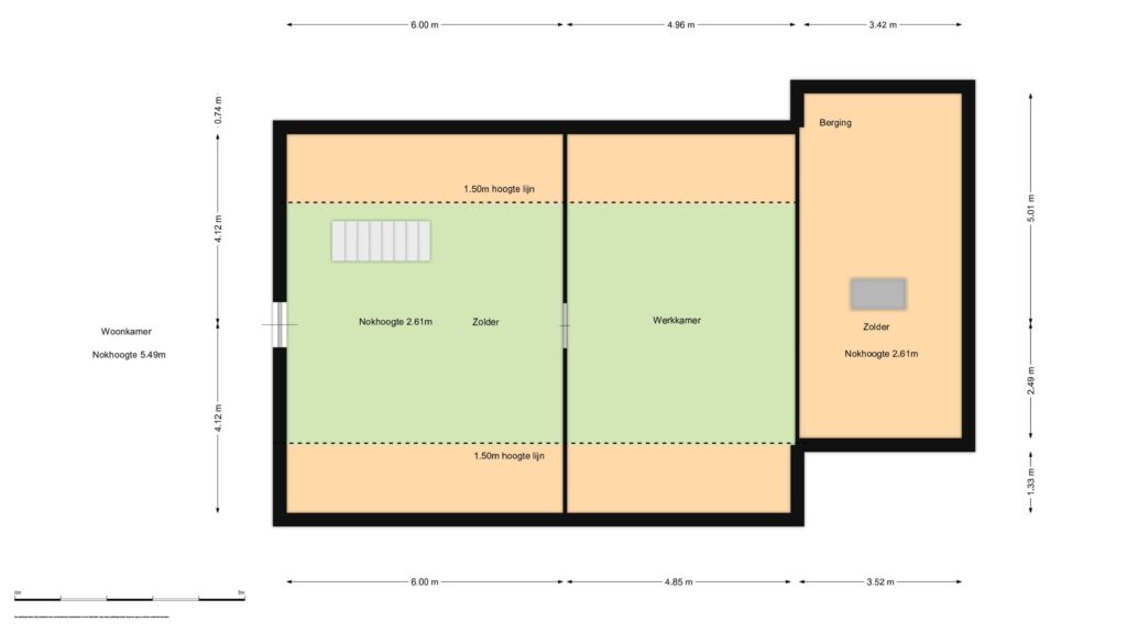 • Een ruime bijkeuken (maat garage) met bergzolder