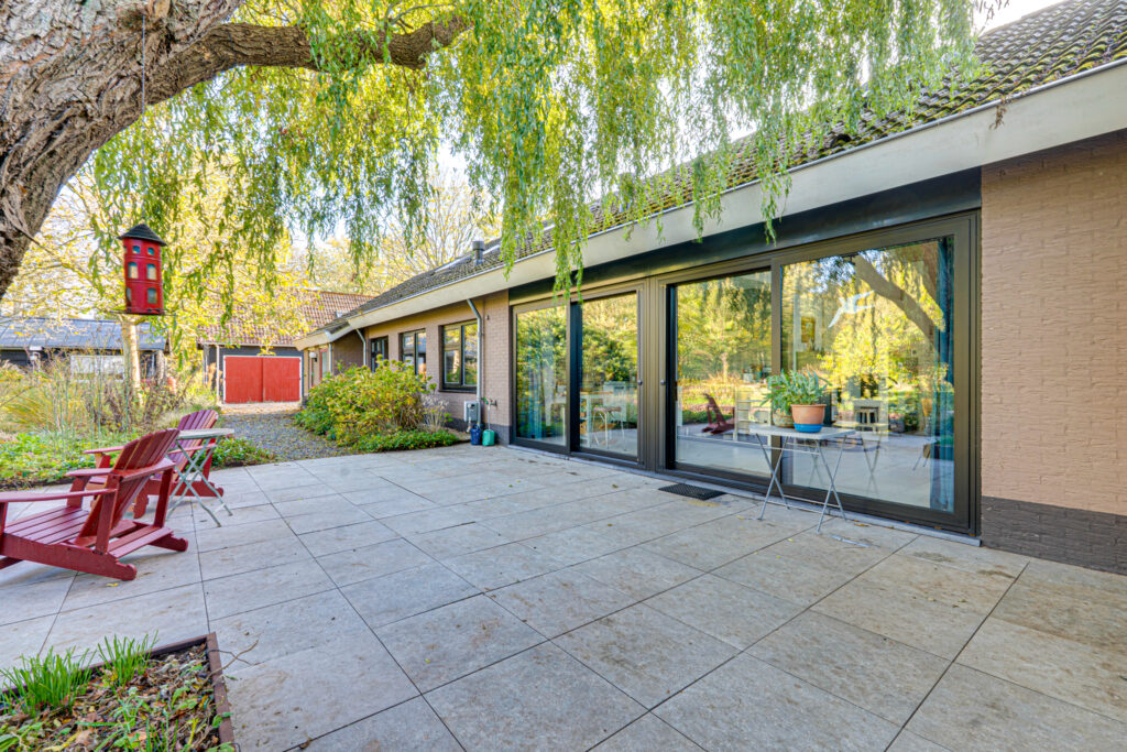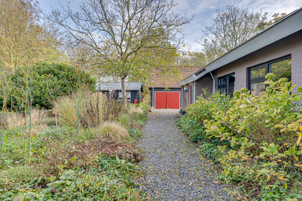 Dit comfortabele woonhuis met twee bijgebouwen ligt aan de rand van het charmante dorpje Driewegen. Zodra je het erf oprijdt, voel je de rust en de ruimte. Het terrein strekt zich uit over meer dan 11.000 m² en vormt een oase van groen, waar je volop het buitenleven ervaart. De tuin voorziet je in de zomer gul van fruit: frambozen, bessen en bramen, appels en peren, pruimen en kweeperen, in het najaar de walnoten, en alles vers en onbespoten.