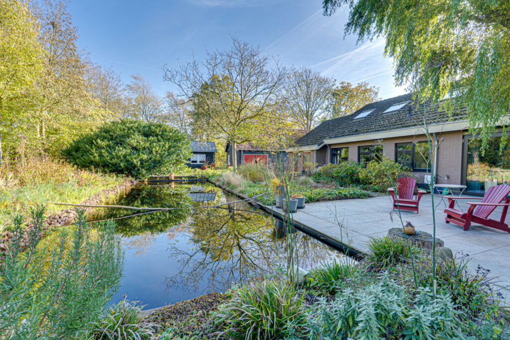 • Parkachtig terrein van 11.310 m² met siertuin, moestuin, fruitbomen en vijvers en bijzondere bomen zoals de gingko en moerbeiboom