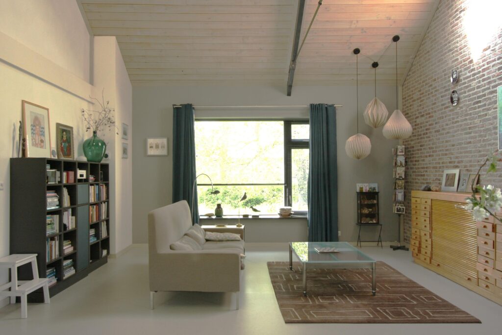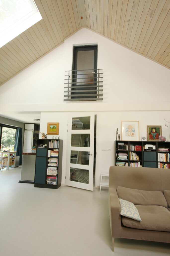 • Ruime zeer lichte woonkamer onder het zadeldak met elektrisch bedienbare Velux ramen