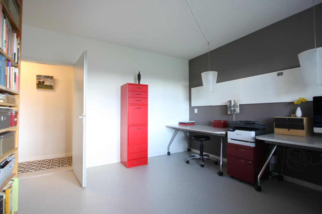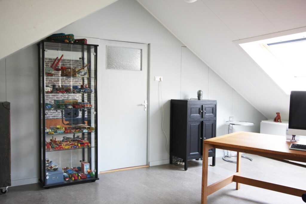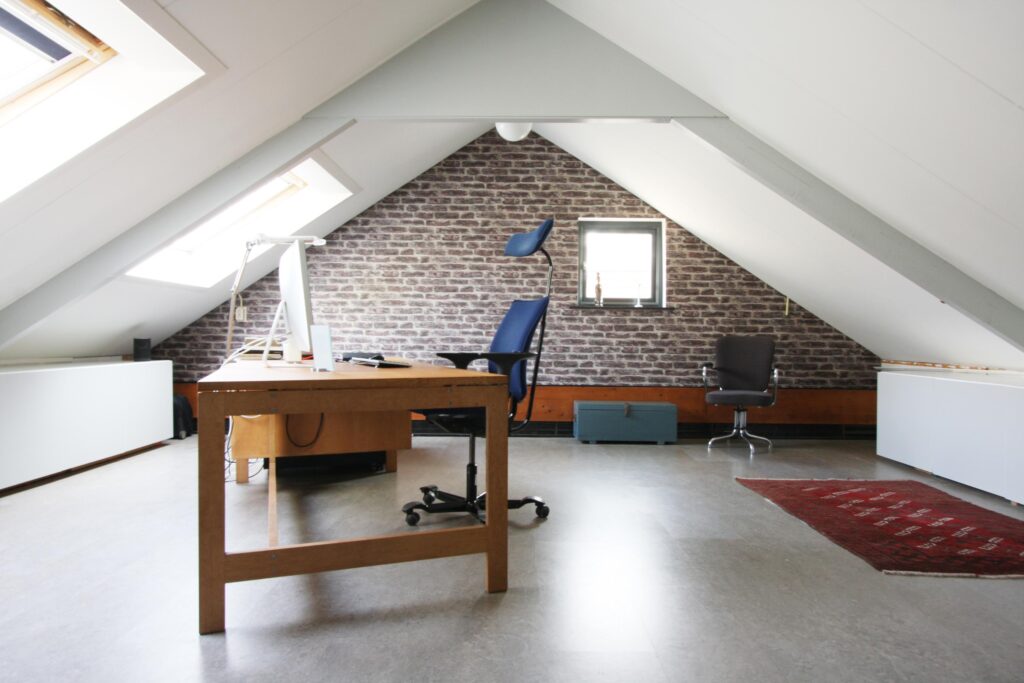 Op de verdieping bevindt zich een royale overloop en een grote lichte zolderkamer. Zo is er in deze woning genoeg ruimte voor een gezin, hobby’s of het combineren van wonen en werken.